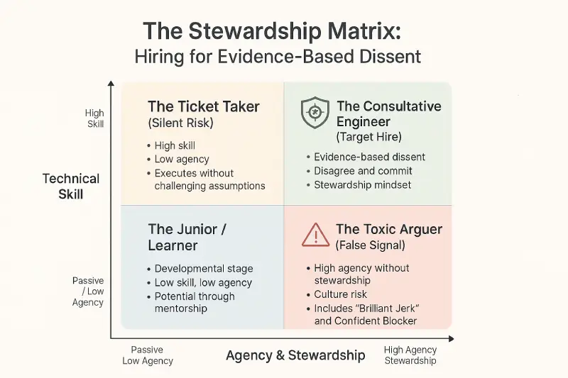 By utilizing impossible requirement testing and explicitly screening for evidence-based dissent, VPs of Engineering can build teams that possess the agency to say “No” today, ensuring the company survives to say “Yes” tomorrow.