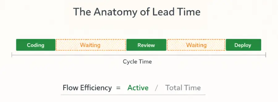 If a feature took 10 calendar days but developers were only actively working on it for 2 of those days, your flow efficiency is 20%. The other 80% of the time, the work was sitting in a queue, waiting for approval, or blocked on a dependency.